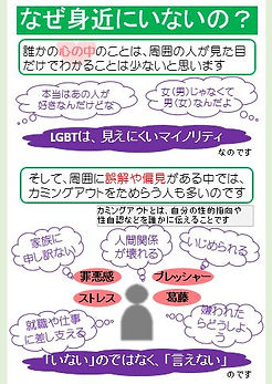 LGBTなどの性的マイノリティの人たちは、見えにくいマイノリティであり、周囲の誤解や偏見のために、言えにくい状況であることを説明してきました。